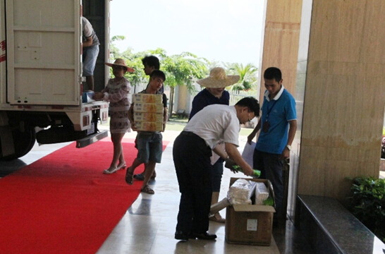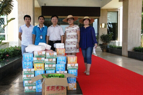 6月27日上午,一輛載滿清涼飲料和勞保用品的貨車緩緩駛?cè)肟抵ニ帢I(yè)廠區(qū)大院。??诟咝聟^(qū)總工會慰問小組一行來到我司為堅守在高溫一線的職工送來清涼問候。