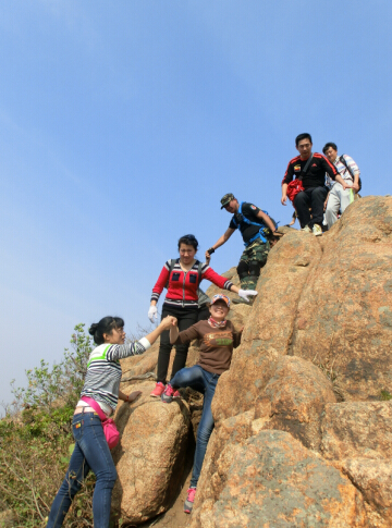 在整個(gè)登山過程中,充分體現(xiàn)整個(gè)團(tuán)隊(duì)相互幫助、團(tuán)結(jié)協(xié)作的融洽的氛圍。在平坦的道路上大家談笑風(fēng)生,相互間開著玩笑;在崎嶇的山路上,大家彼此幫扶、相互牽引,共同度過暫時(shí)艱難;在有人掉隊(duì)時(shí),大家相互鼓勵(lì)、支持,共同前行。正是這種扶持與協(xié)作,讓大家共同抵達(dá)了最高峰。