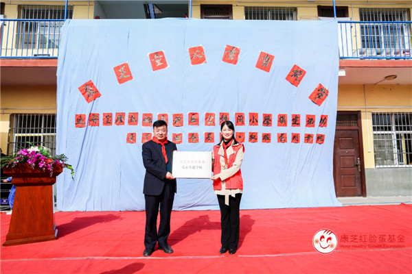 △康芝藥業(yè)代表向?qū)W校贈(zèng)送了“愛(ài)心共建學(xué)校”牌匾