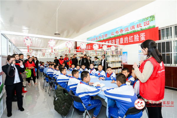 2019年10月28日,康芝紅臉蛋基金攜手陜西偉業(yè)醫(yī)藥有限公司及七家當(dāng)?shù)卦\所前往延安寶塔區(qū)姚店新區(qū)小學(xué)開(kāi)展愛(ài)心探訪及捐贈(zèng)活動(dòng),第20所康芝紅臉蛋圖書(shū)館于該校落成。